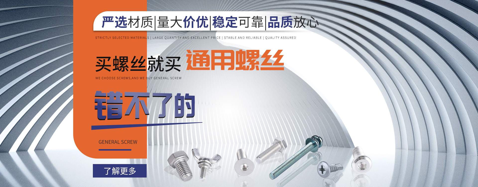 中山市通用螺絲制造有限公司成立于1987年,工廠坐落于廣東四小虎之一的中山市,北連廣州,毗鄰港澳。總占地面積14000m 2,足有兩個(gè)足球場(chǎng)。我司于1998年通過(guò)德國(guó)萊茵TUV ISO9002認(rèn)證,于2002年通過(guò)TUV ISO9001:2000認(rèn)證。2008年通過(guò)ISO 14000認(rèn)證。我司主營(yíng)自攻螺絲、組合螺絲、機(jī)械螺絲、防松螺絲等標(biāo)準(zhǔn)和非標(biāo)準(zhǔn)件,我司既可按客戶(hù)的要求提交所需的產(chǎn)品,也可以為客戶(hù)量身定做所需產(chǎn)品。我司擁有專(zhuān)業(yè)的產(chǎn)品檢測(cè)隊(duì)伍和投影分析儀、金相、硬度計(jì)(韋氏和洛氏)、扭矩力測(cè)試計(jì)等完善的檢測(cè)設(shè)備,為電子、電器、五金塑料、衛(wèi)浴、家具、機(jī)械、汽配等行業(yè)提供符合歐盟質(zhì)量、環(huán)保要求的產(chǎn)品。2006年,我司自主開(kāi)發(fā)的ERP管理系統(tǒng),使我們的生產(chǎn)和服務(wù)效率得到了極大的提高。 經(jīng)過(guò)三十多年地摸爬滾打,依靠眾多新老顧客的支持,通用螺絲逐漸成長(zhǎng)為國(guó)內(nèi)知名的緊固件供應(yīng)商。了解更多 >>